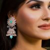 Gold Plated Ear Ring, Antique Color with all real stone.